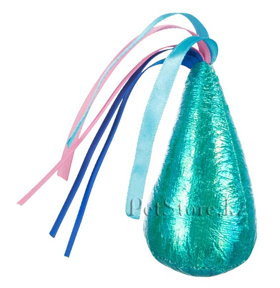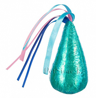 Яркая мягкая игрушка из блестящей полиэстеровой ткани. В верхней части игрушка оснащена пучком из нескольких разноцветных ленточек для привлечения внимания кошки.