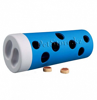 Простая игрушка-диспенсер для кошек разного возраста. Представляет собой контейнер для сухого корма в виде трубки с переменным диаметром и отверстиями, через которые в процессе игры высыпаются кусочки сухого корма.