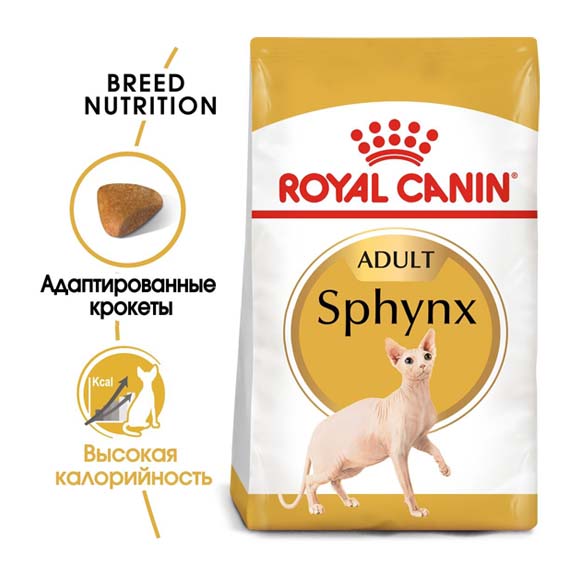 Сфинксы — это не просто кошки, это уникальные создания с особым метаболизмом и полным отсутствием шерстного покрова. Royal Canin Sphynx Adult — это специализированный полнорационный корм, разработанный с учетом всех физиологических потребностей взрослых кошек породы сфинкс (старше 12 месяцев).
