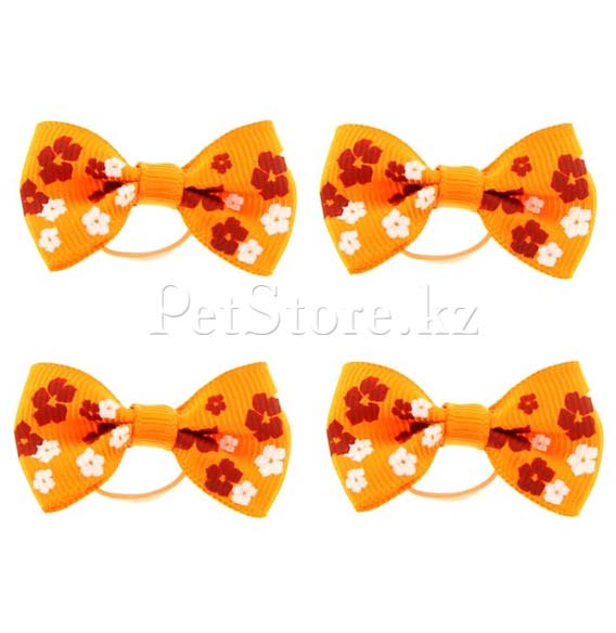 Бантики оранжевые с цветами на латексной резинке.