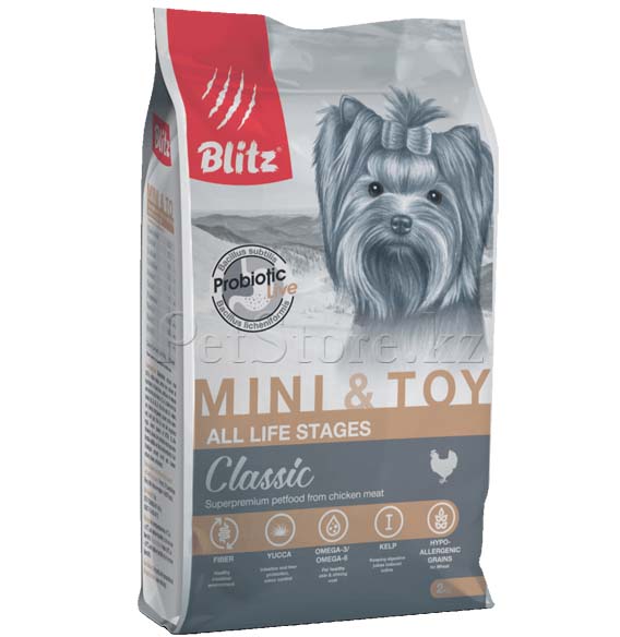 Сбалансированный сухой корм Blitz All Life Stages Mini & Toy Breeds - это суперпремиум-класс, созданный в соответствии с особыми потребностями собак мелких и миниатюрных пород (весом до 10 кг). Он не только обладает изысканным вкусом, но и содержит оптимальный баланс питательных веществ: животных белков и жиров. Уникальная формула обеспечит здоровье, энергию и долголетие вашего маленького любимца.