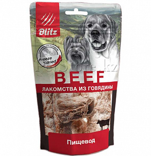 Для приготовления сублимированного лакомства Blitz для собак используется говяжий пищевод, или, как ещё называют этот субпродукт — пикальное мясо, представляющее собой пластинки мышечной ткани, внутри которых находится аппетитная мягкая жилка. Для вашей собаки — это настоящий изысканный деликатес, который не только доставит ей огромное удовольствие, но и принесёт большую пользу. В пищеводе нет жира, зато много белка с полноценным аминокислотным составом, витаминов и микроэлементов.