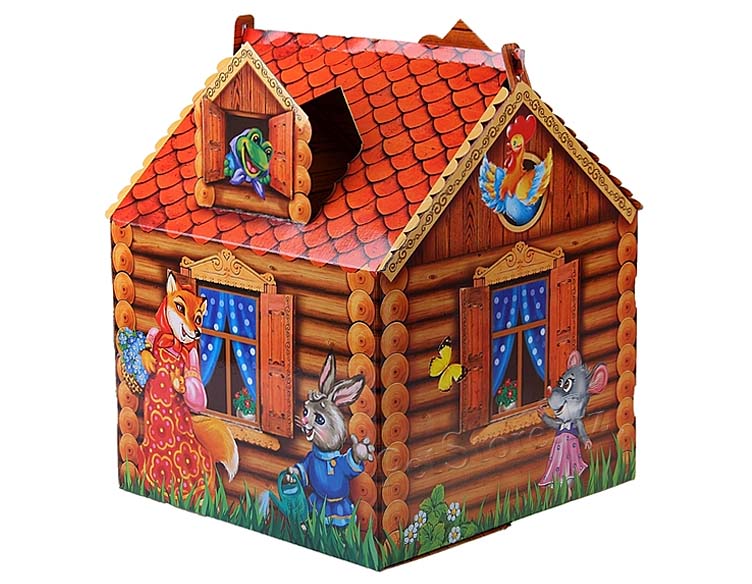 Домик выполнен из картона, что делает уход за изделием максимально лёгким. Будка стилизована под всеми любимый теремок, который всегда ждёт вашего питомца в гости!