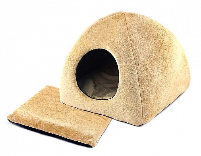 Стилизованный под юрту, домик повышенной комфортности. В отделке скомбинированы высококачественные материалы - плюшевый коротковорсовый мех и сатин с водоотталкивающей пропиткой. В набивке стенок применен плотный поролон, а в вынимающейся подушке - периотек (синтетический набивочный материал нового поколения, волокна которого в крайних слоях ориентированы прямолинейно, а в середине - навиты наподобие пружин). Допускается машинная стирка (30°С, щадящий режим).