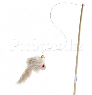 Дразнилка удочка деревянная с мышкой и колокольчиком.
