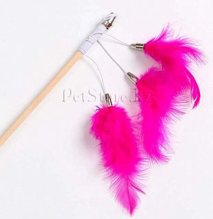 Дразнилка-удочка "Салют из перьев" на деревянной палочке.