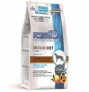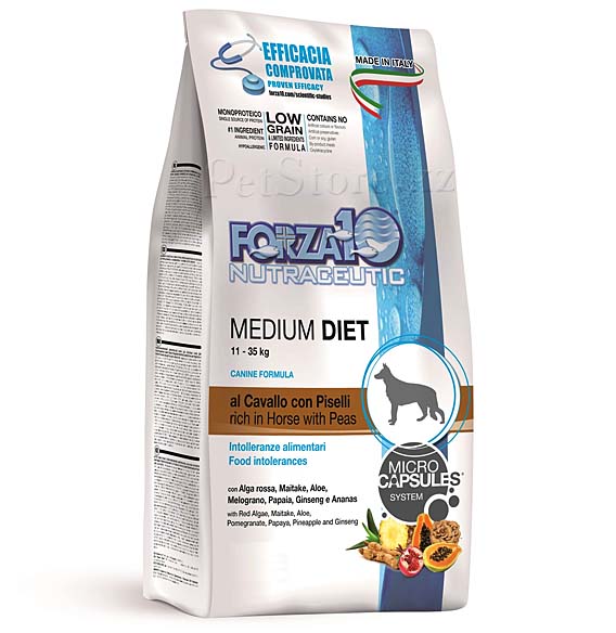 Найти подходящий корм для собаки с мультиаллергией — непростая задача. Forza10 Medium Diet с кониной — это полнорационный диетический корм супер-премиум класса (Италия), разработанный специально для собак весом от 11 до 35 кг.
