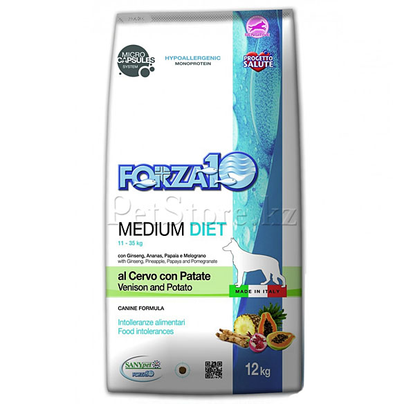 Поиск подходящего питания для собаки с множественной пищевой аллергией — непростая задача. Forza10 Medium Diet с олениной и картофелем — это полнорационная диета супер-премиум класса (Италия), созданная для собак весом от 11 до 35 кг.