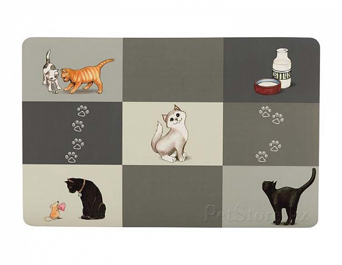 Удобный и практичный коврик под миску из синтетических материалов, используя который, вы сможете содержать место для кормления кошки в чистоте, не прилагая особых усилий.