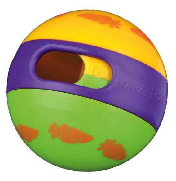 Игрушка для крупных грызунов, мяч для наполнения лакомством. При катании мяча наполнение высыпается из отверстия. Питомец надолго будет занят игрой с мячом и добыванием лакомств.