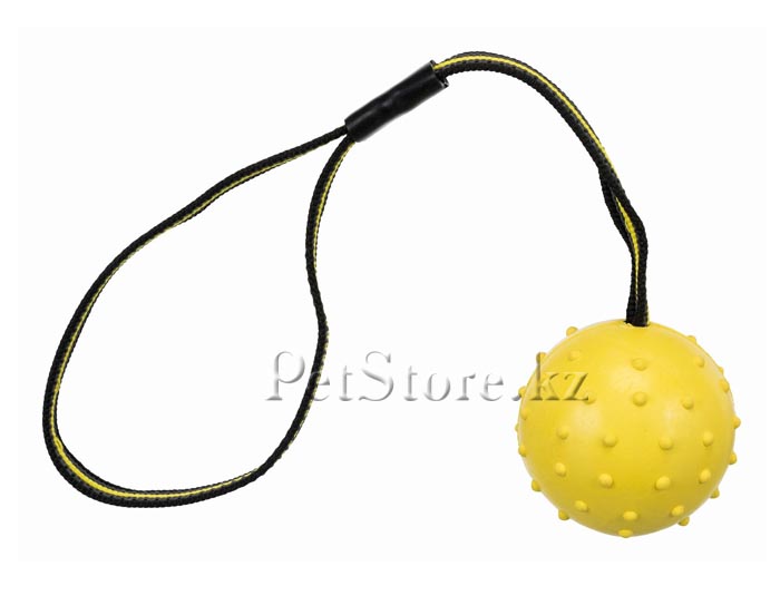 Удобная ручка в виде петли облегчает игру в перетягивание и защищает сустав кисти от повреждений во время резких рывков собаки. Поверхность мячика имеет небольшие мягкие шипы, которые в процессе игры будут мягко массировать десны и очищать зубы от налета.