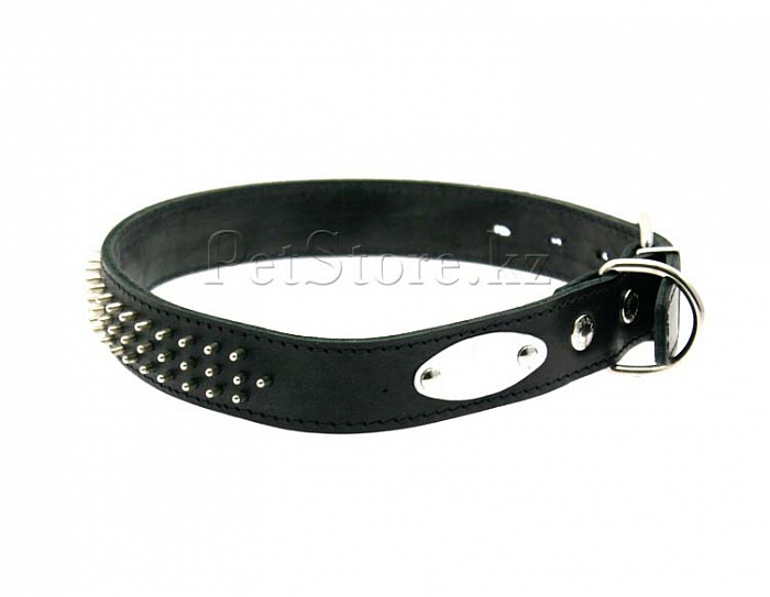 Ошейник кожаный двойной с шипами-ёж в 3 ряда.