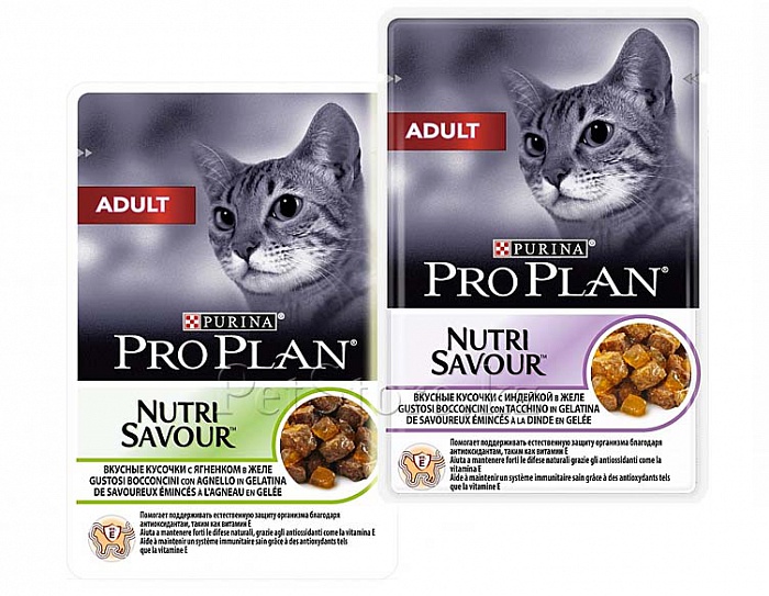 Pro Plan NutriSavour Adult — Вкусные кусочки в желе для кошек старше 12 месяцев. Сбалансированный полнорационный влажный корм для кошек, содержащий смесь ингредиентов, эффективность которых в сохранении здоровья кошек получила научное подтверждение. Высокое содержание мяса делает корм более аппетитным и необычайно вкусным.Для взрослой кошки среднего веса (4 кг) требуется 3 пакетика в день, разделенных на два кормления.