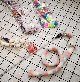 Дразнилка стек со змейками из флиса, и колокольчиками.