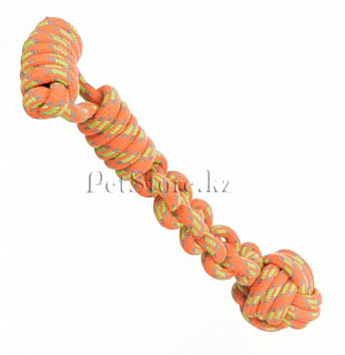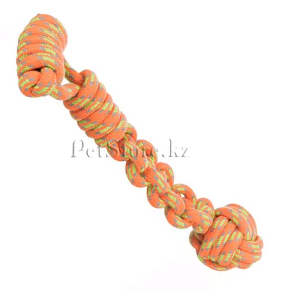 Прочная веревочная игрушка с цельной туго сплетенной конструкцией. На одном конце игрушки удобная ручка, а с другой стороны - веревочный мячик. Игрушка идеально подходит для игр в перетягивание.